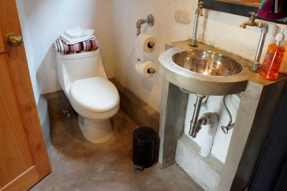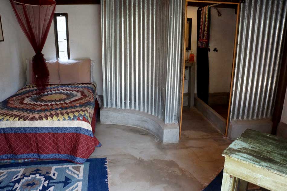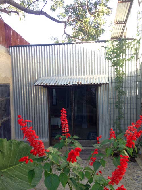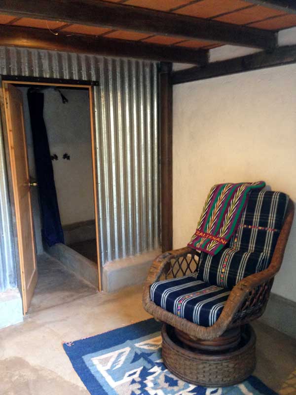 Hay un cómodo banco afuera de la habitación para disfrutar del sol de la eterna primavera de Guatemala.